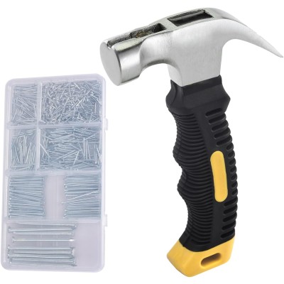 750PCs Nails for Hanging Pictures Assortment Kit & 8oz Small Hammer - 6 Sizes Small Nails and Mini Hammer Set for Picture Hanging, Wall Nails for Hanging